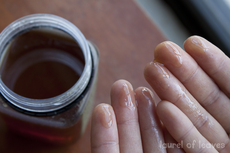 I often follow my honey mask with an apple cider vinegar toner, then moisturize with coconut oil. Don’t worry-the wonderful fragrances from the honey and coconut oil override the potency of the vinegar.