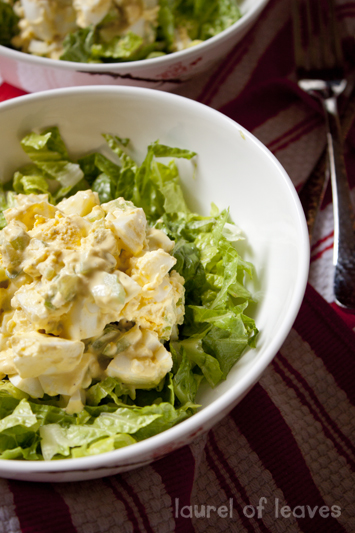 When I plan meals for the week, I like to have at least 2 or 3 salads on the list. I make up a big batch of each and keep them in the fridge for quick and easy lunches. Egg salad is one of my favorite salads to keep handy. It’s nice and creamy, but not too creamy. I like my egg salad to have a bit of structure. More salad, less soup. You know what I’m talking about. Right?