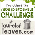 I've Joined the (Non)Disposable Challenge at laurelofleaves.comIf you want to join in on the (non) disposable challenge, it’s not too late! Simply commit to not buy anything disposable for the next month. No paper towels, no paper napkins, no trash bags, no tissues, no plastic baggies. (Toilet paper is still allowed, though!) If you run out of something inside the month long parameters, either go without or get creative to find ways to use things you already own (or buy reusable, preferably used or repurposed, items like glass jars from the thrift store).