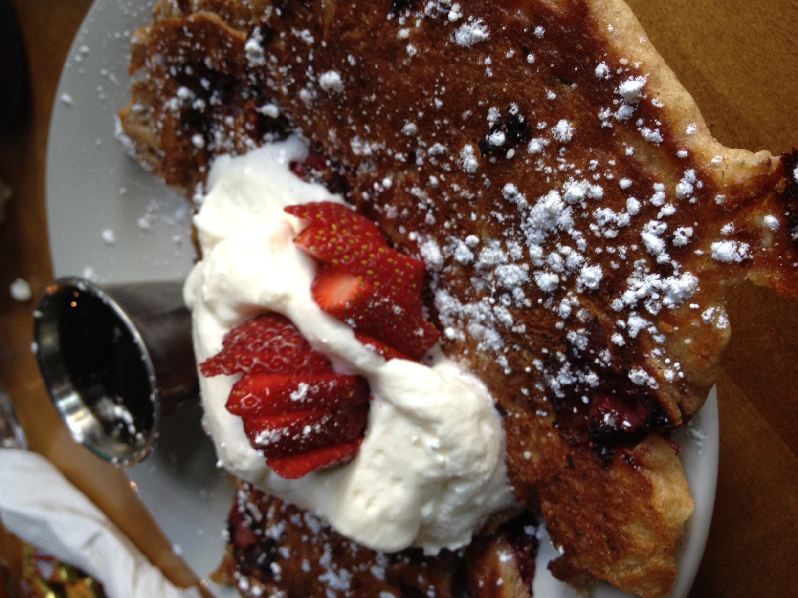 Strawberry Tarragon Goat Cheese Hotcakes at Overeasy Cafe in Asheville, NC
